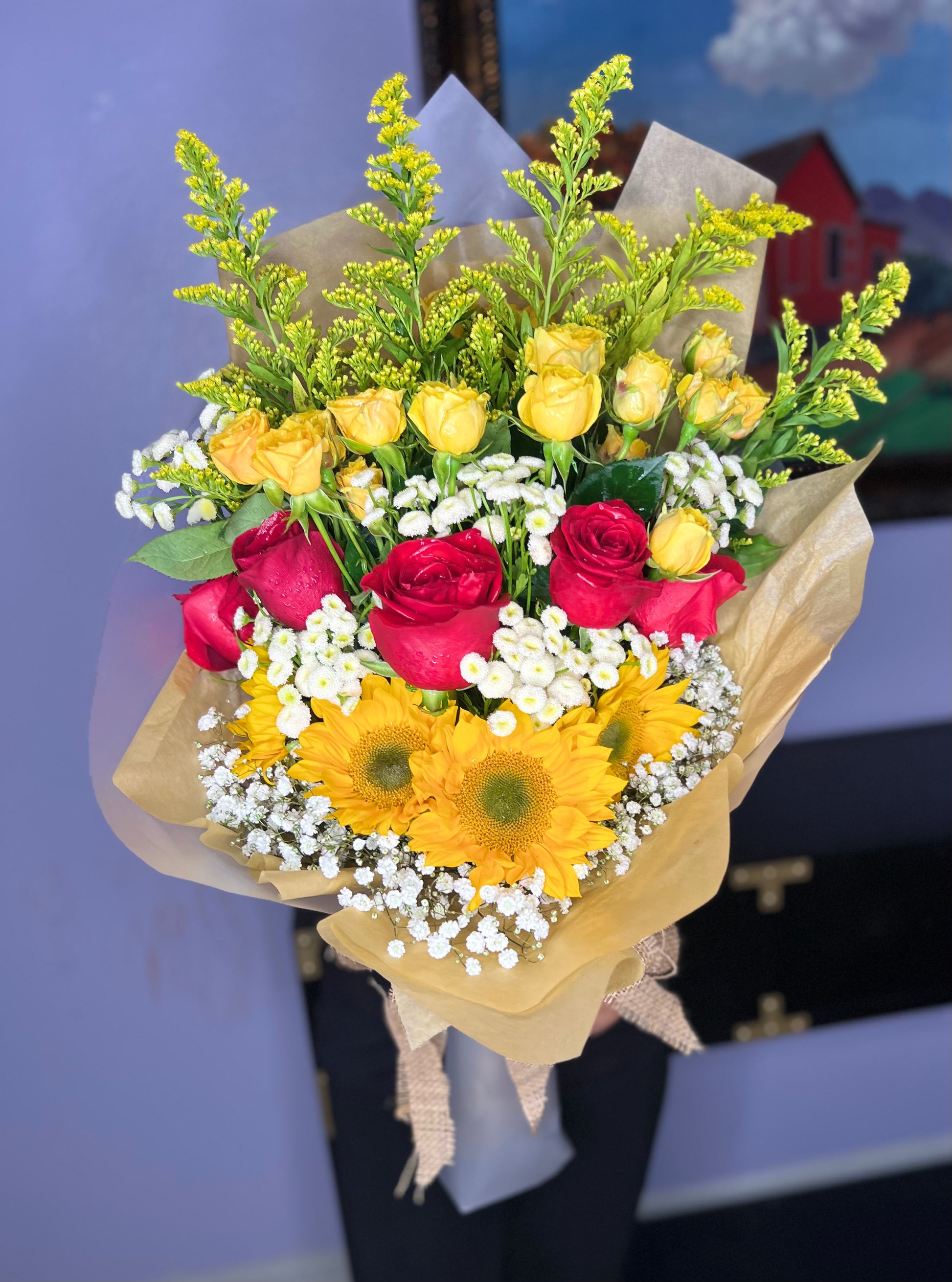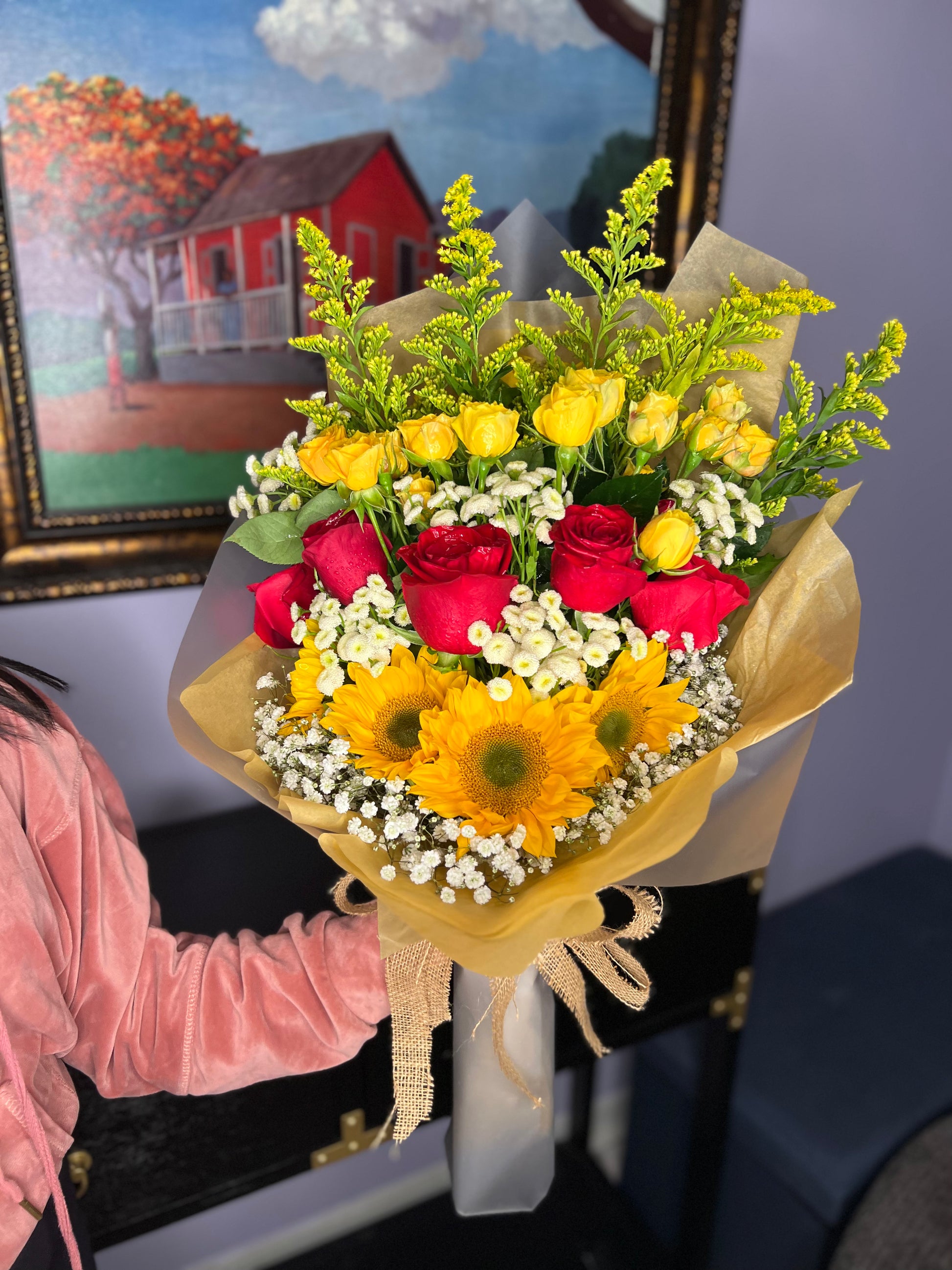 A bouquet of sunflowers and roses can pierce anyone's heart to serve as a reminder of your strength and beauty.